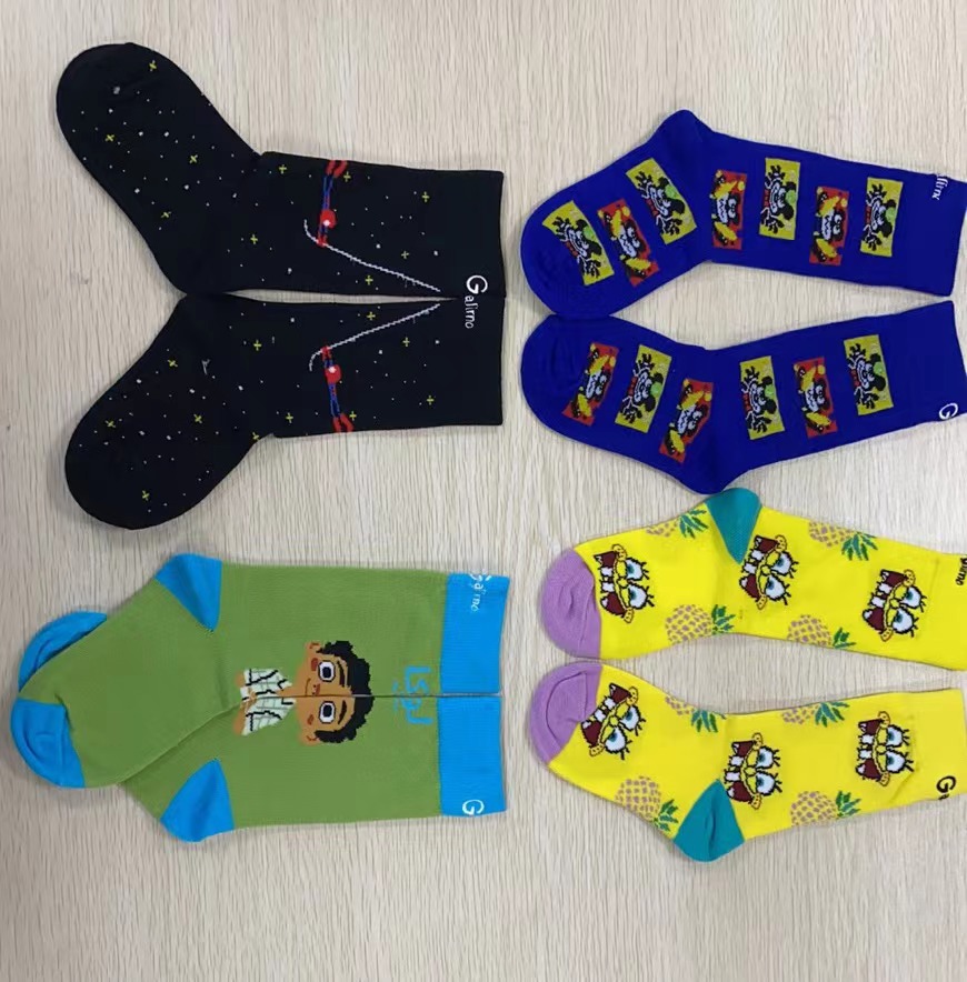 We have 144N, 168N, 200N machines to produce happy fancy crazy socks. If your design is coloful and complex we recommned do 200N, just socks would be thinner.